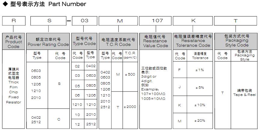 风华高科高阻值厚膜片式固定电阻器型号表示方法: