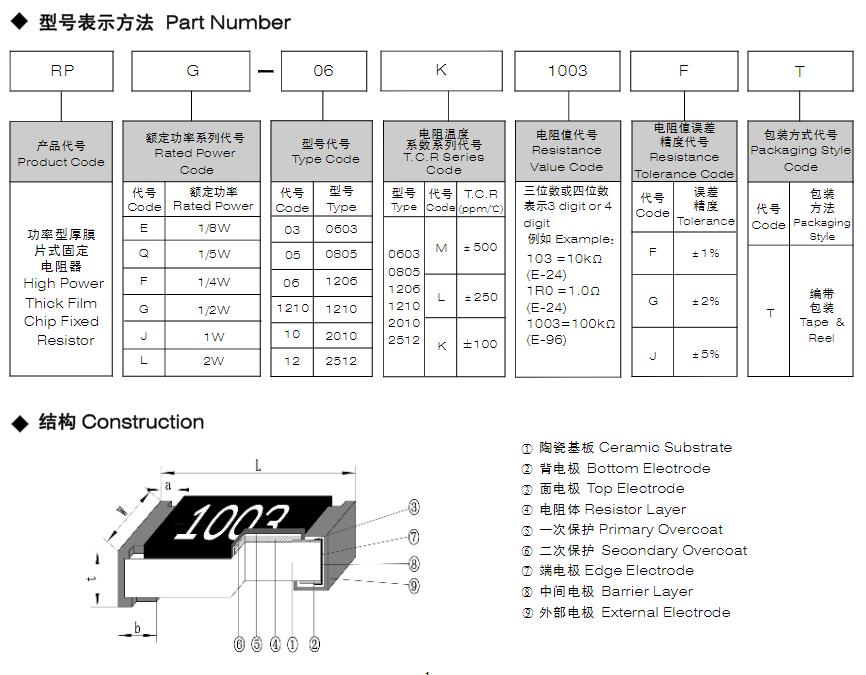 风华功率型厚膜片式固定电阻器型号表示方法: