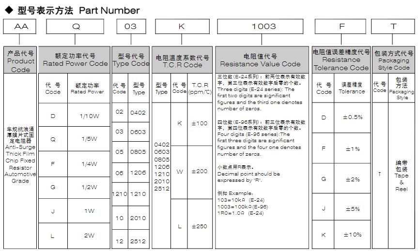 风华高科车规抗浪涌厚膜片式固定电阻器型号命名规则: