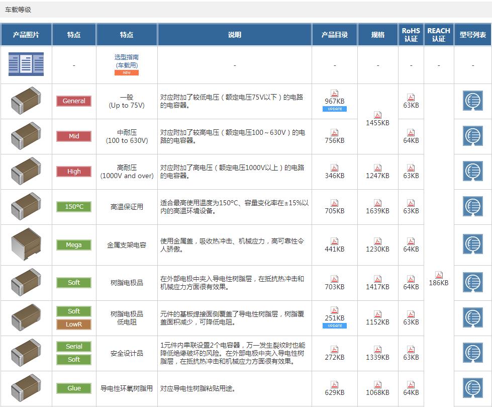 TDK车规电容一般 (Up to 75V):
