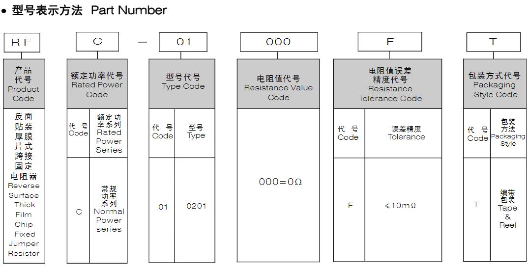 风华高科反面贴装厚膜片式跨接固定电阻器型号命名规则: