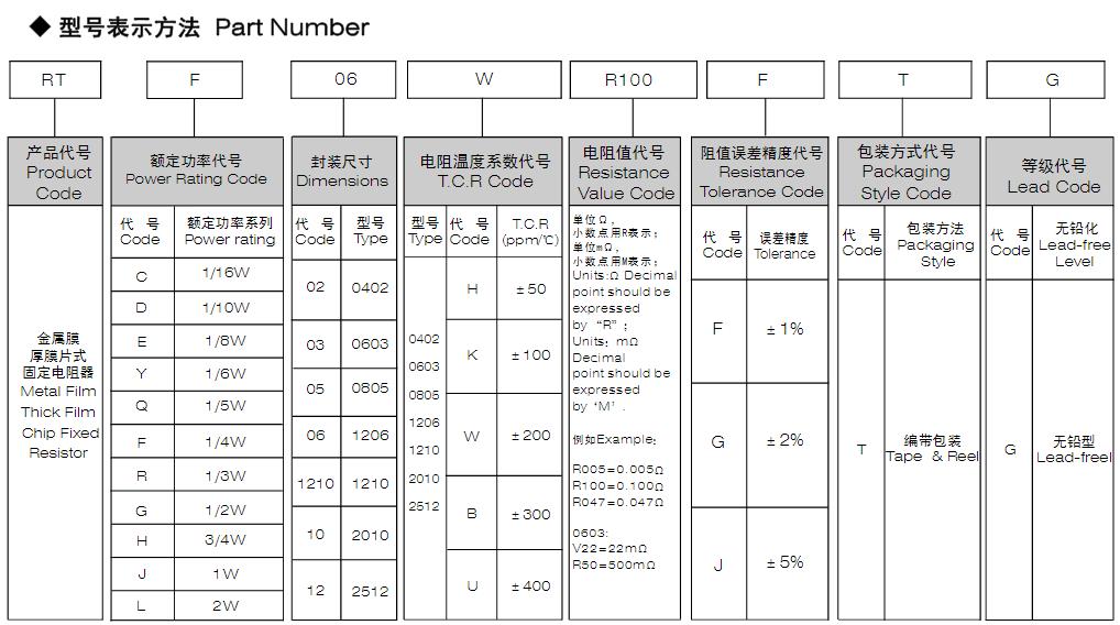 风华高科金属膜厚膜片式固定电阻器型号命名规则: