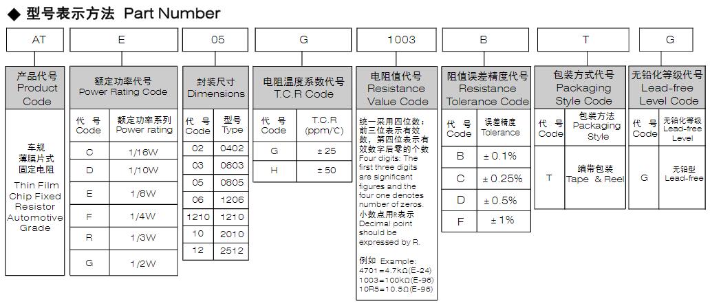 风华高科车规薄膜片式固定电阻器型号命名规则: