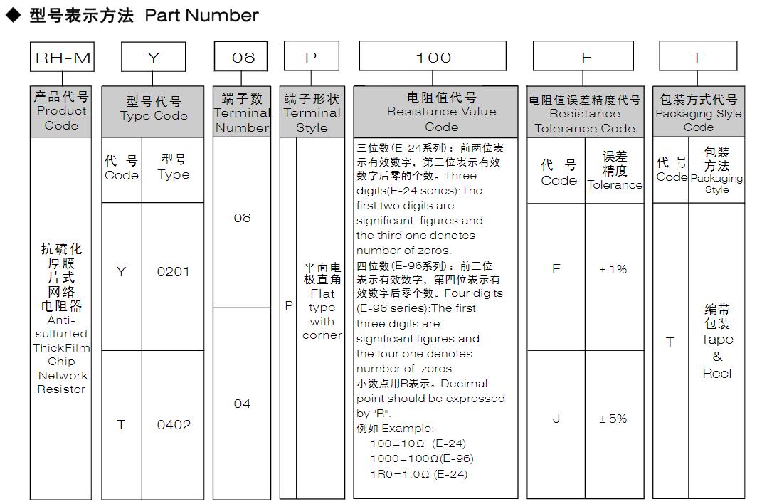 风华高科抗硫化厚膜片式网络电阻器-平面电极型号命名规则: