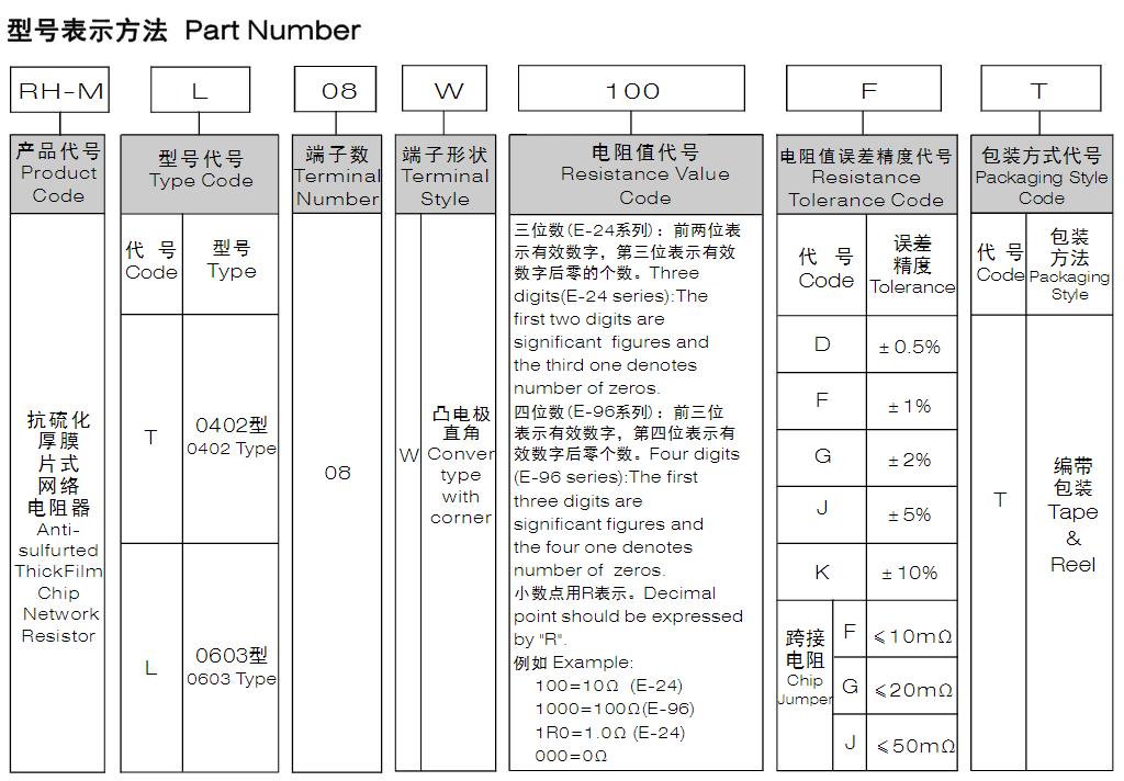风华高科 抗硫化厚膜片式网络电阻器型号命名规则: