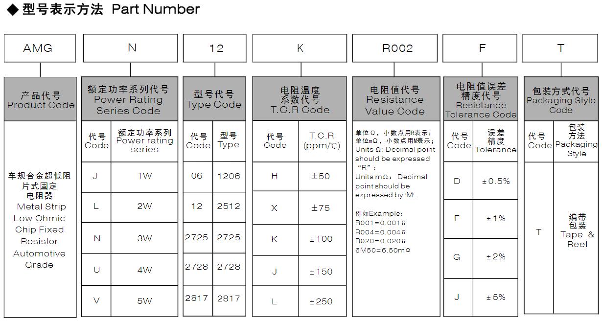 风华高科车规合金超低阻值片式固定电阻器型号命名规则: