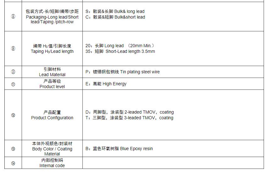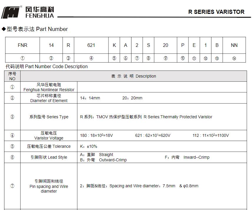 风华高科R系列压敏电阻器型号命名规则: