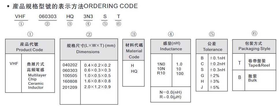 风华高科叠层片式高频电感命名规则: