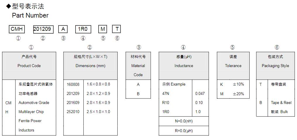 风华高科叠层片式铁氧体功率电感器命名规则: