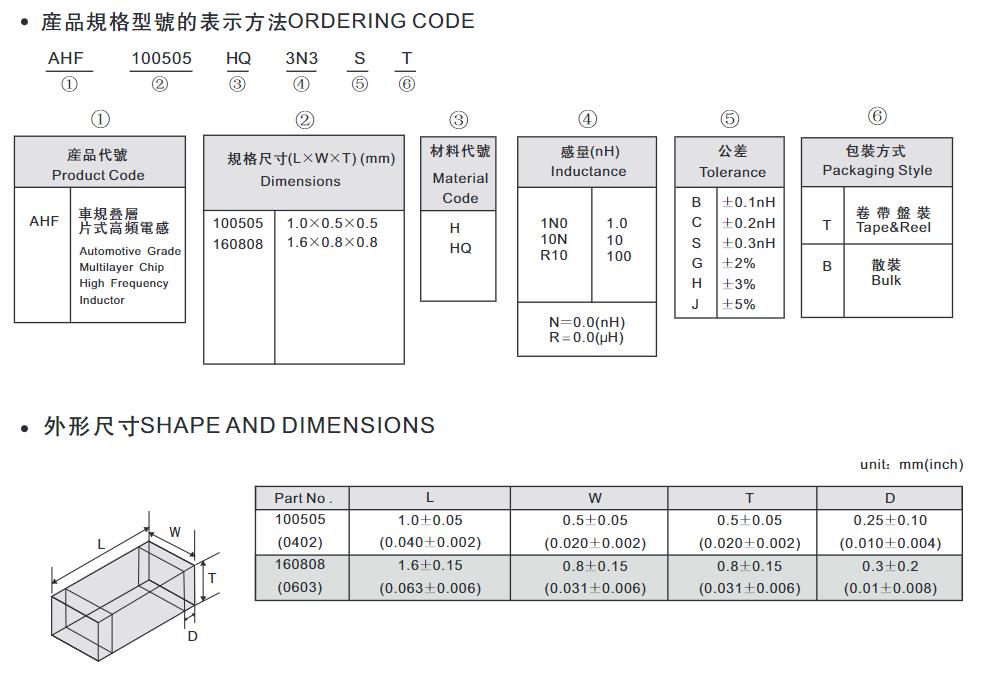 车规叠层片式高频电感器 Automotive Grade Multilayer Chip RF Inductors