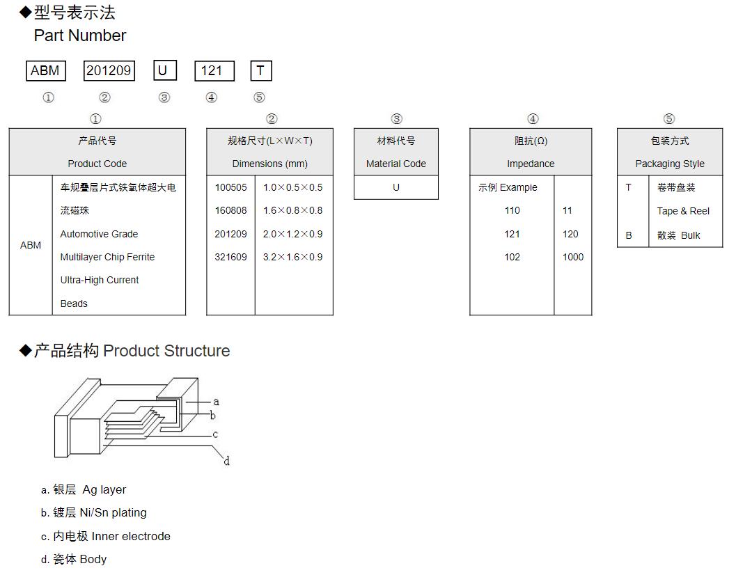 风华高科车规叠层片式铁氧体超大电流磁珠命名规则: