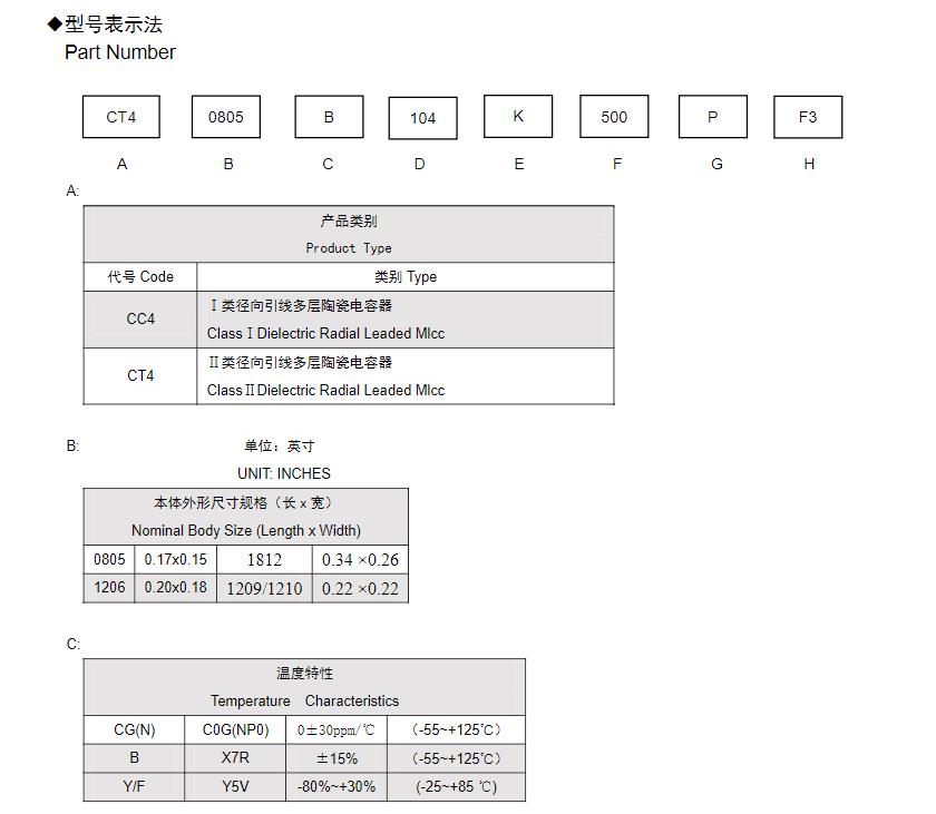 风华高科径向引线多层陶瓷电容型号命名规则: