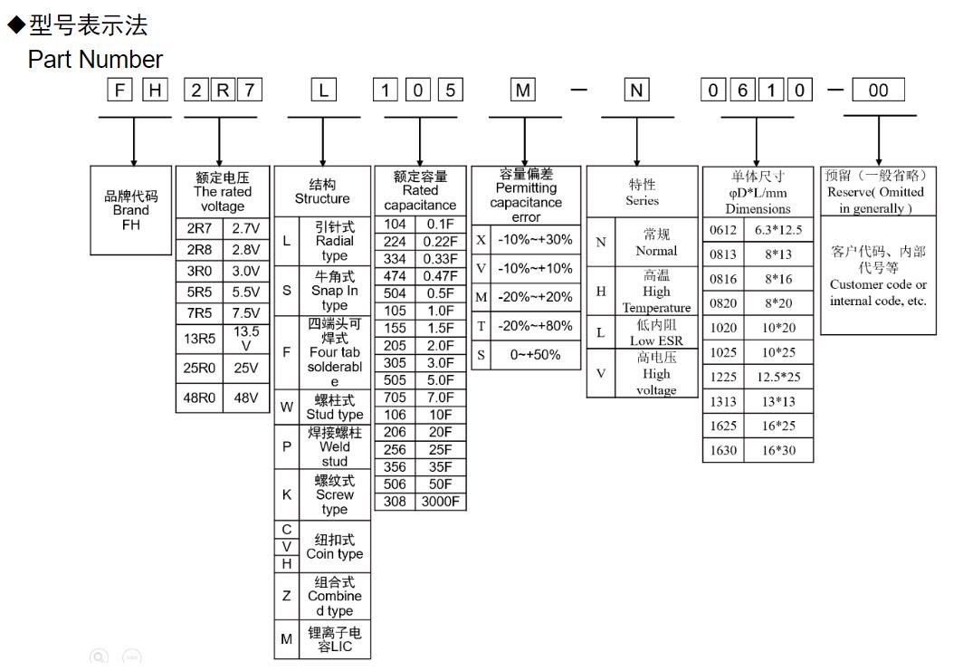 风华高科圆柱型超级电容器型号命名规则: