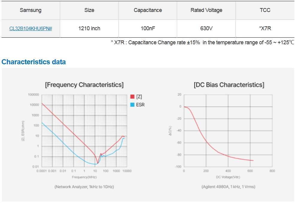▷ 三星电机正在不断扩大小型,高压,高容值MLCC的line-up。本产品在1210 inch、X7R、630V line-up中,将容值扩大到了100nF, 满足 xEV (OBC、DC-DC Converter 等) 应用的小型化、高效率特性要求。