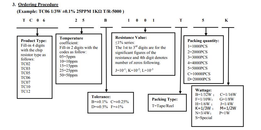 厚声薄膜电阻命名规则: