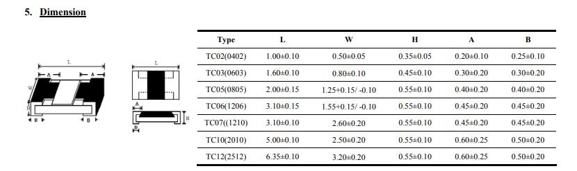 厚声薄膜电阻规格尺寸: