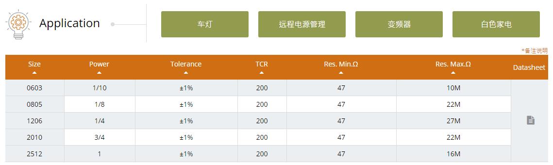国巨的高压电阻系列产品 ,最适用于工业自动化,电源及电池充电器。该系列专门设计于处理最大电压500V以内,尺寸规格为0603到2512。表面贴装电阻适合于通过自动处理贴装系统。