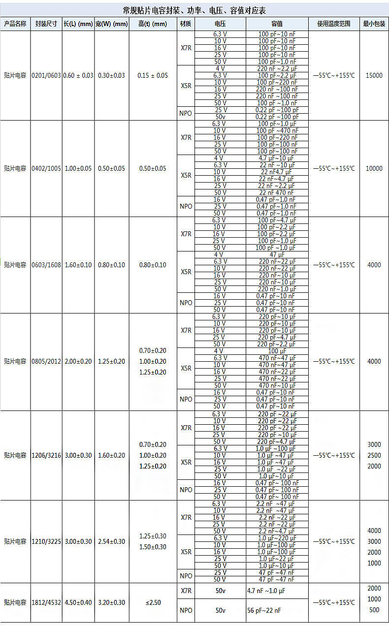 对于一些新采购对贴片电容并不是很了解,那么超翔电子专业代理贴片电容,为新采购能够快速,了解常用贴片电容一系列参数,为大家准备了,贴片电容常规贴片电容的封装,功率,电压,容值对应表,供采购参考。