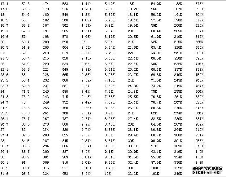 根本没有的阻值,然后还要筛选等等,关键的问题是没有阻值表可以套用,贴片电阻都是基于E24-E96系列来定的,可以快递查询到相关的阻值!