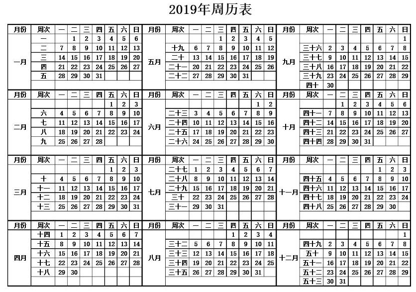 19:代表第19周。 看哪年周历表