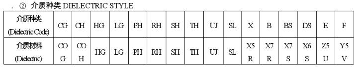 风华电容介质种类:常用有CG(COG或NPO)、B(X7R)、F(Y5V)、X(X5R)、E(Z5U)