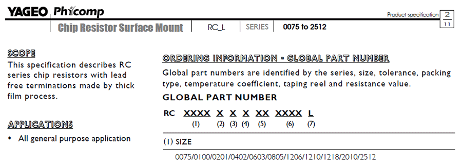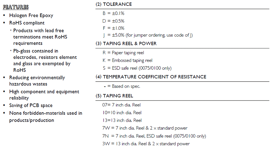 产品封装:0075/0100/0201/0402/0603/0805/1206/1210/1218/2010/2512