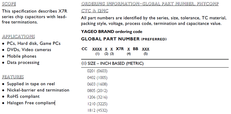 产品封装:0201/0402/0603/0805/1206/1210/1812