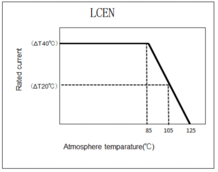 ※ 需要根据周围温度进行额定电流的降额。请参照下图进行使用电流的降额。