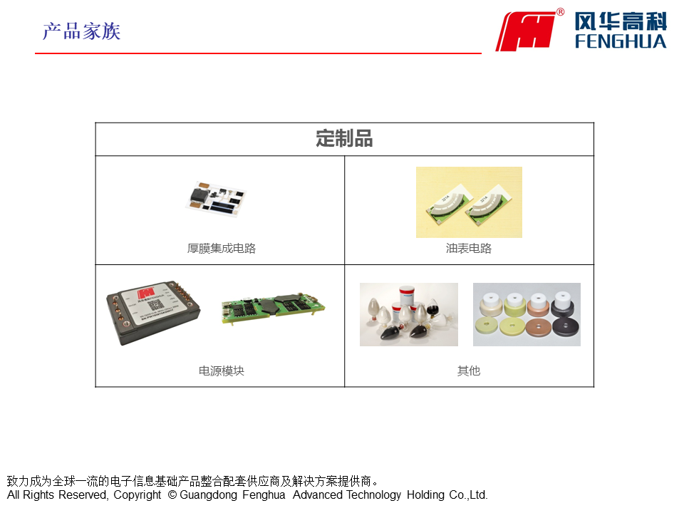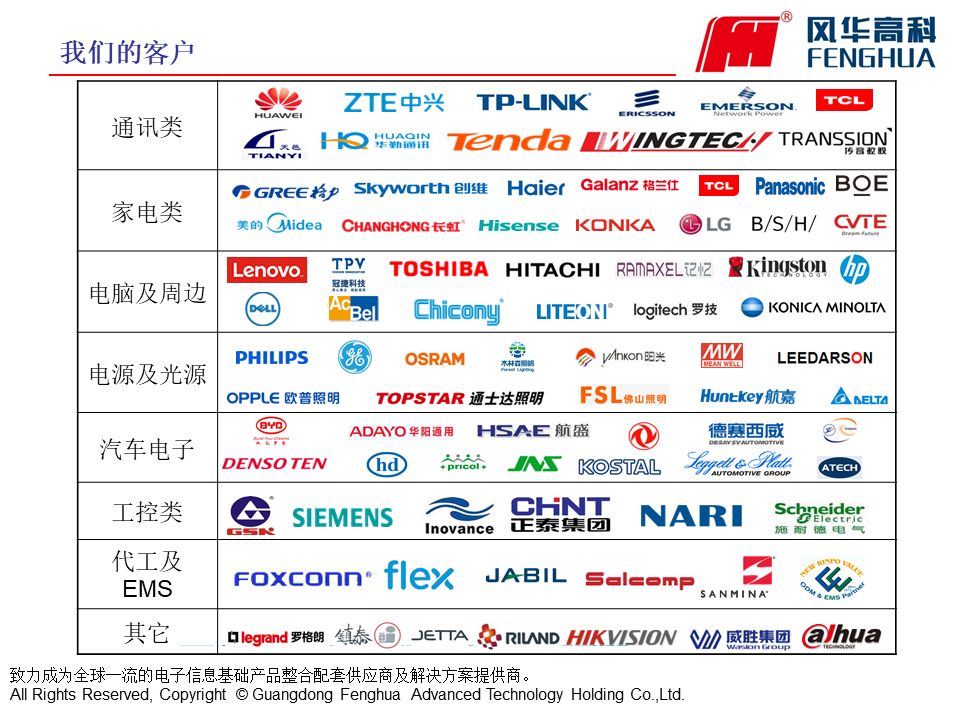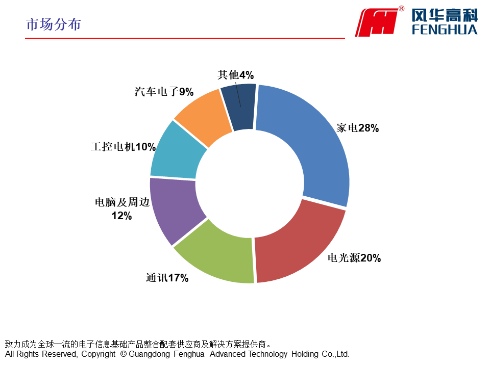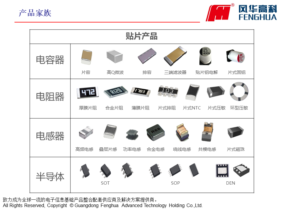 风华高科具有完整与成熟的产品链,具备为通讯类、消费类、计算机类、汽车电子类、照明电器类等电子整机整合配套供货的大规模生产能力。