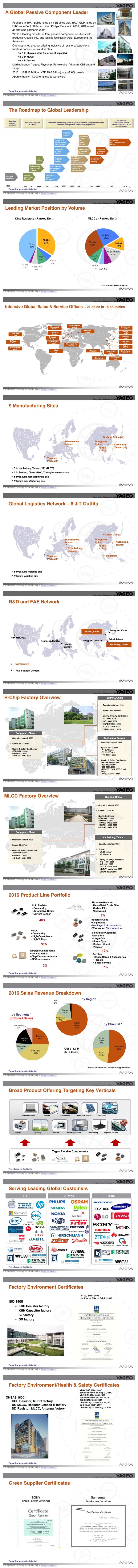 国巨公司成立于1977年,为全球领先的被动元件服务供应商,其生产及销售据点涵盖亚洲、欧洲及美洲。 国巨公司为提供客户「一次购足服务」, 供应完整的产品组合,包括一般品和特殊品的电阻、电容及无线元件,以满足客户各种不同领域应用的需求。