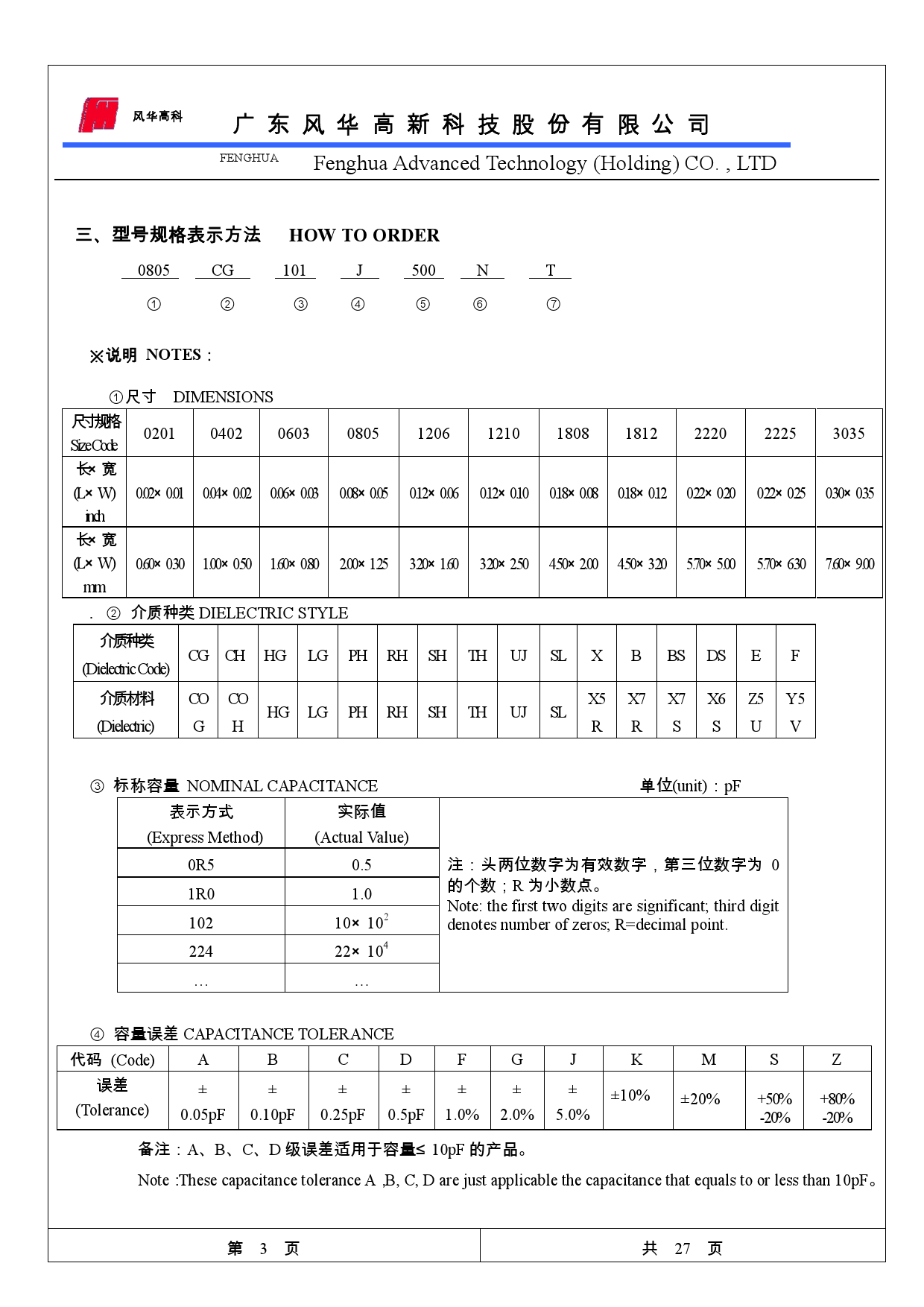 风华贴片电容型号对照表