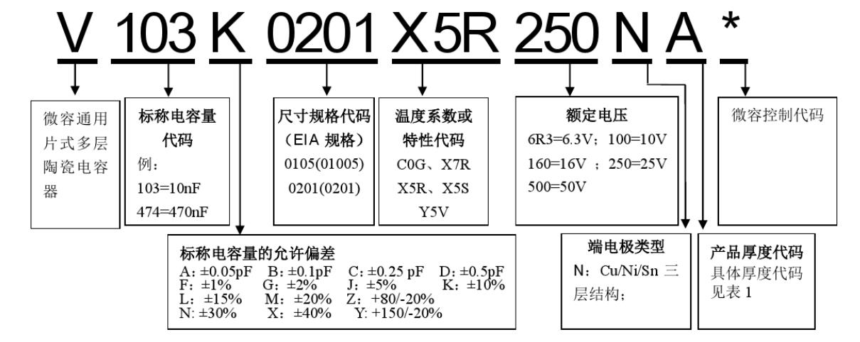 VIIYONG(微容)电容品牌编码规则对照表