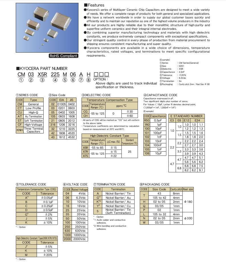 Kyocera 京瓷贴片电容命名规则