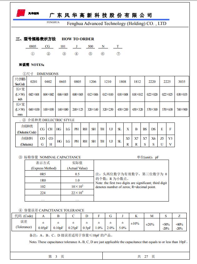风华电容规格书对照表