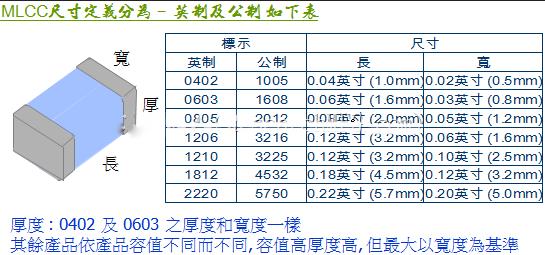 COG为EIA标准,其表示温度从 -55°C到125°C电容值变化(以25°C之电容值为基准),COG为 +/- 30ppm/°C 。