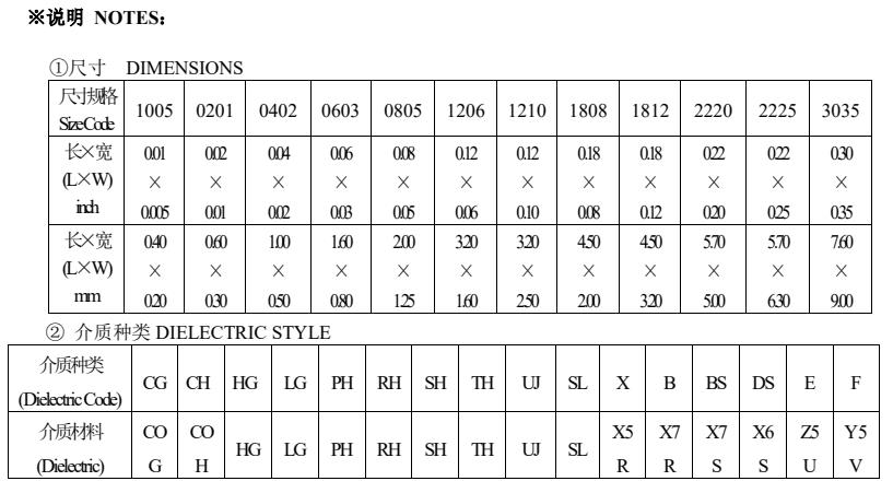 风华高科电容材质与规格尺寸对照表