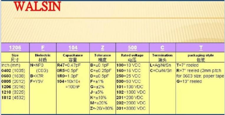华新科贴片电容命名规则对照表