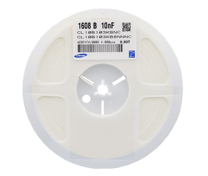 三星贴片电容耐压值代码:例如三星电容型号:CL10B103KB8NNNC,我们可以看到三星电容额定电压字母B表示电压50V,下面是三星电容耐压代码? 6 额定电压:R=4V Q=6.3V P =10V O =16V A =25V L =35V B =50V C=100V D =200V E =250V G = 500V H = 630V I = 1000V J = 2000V K= 3000V
