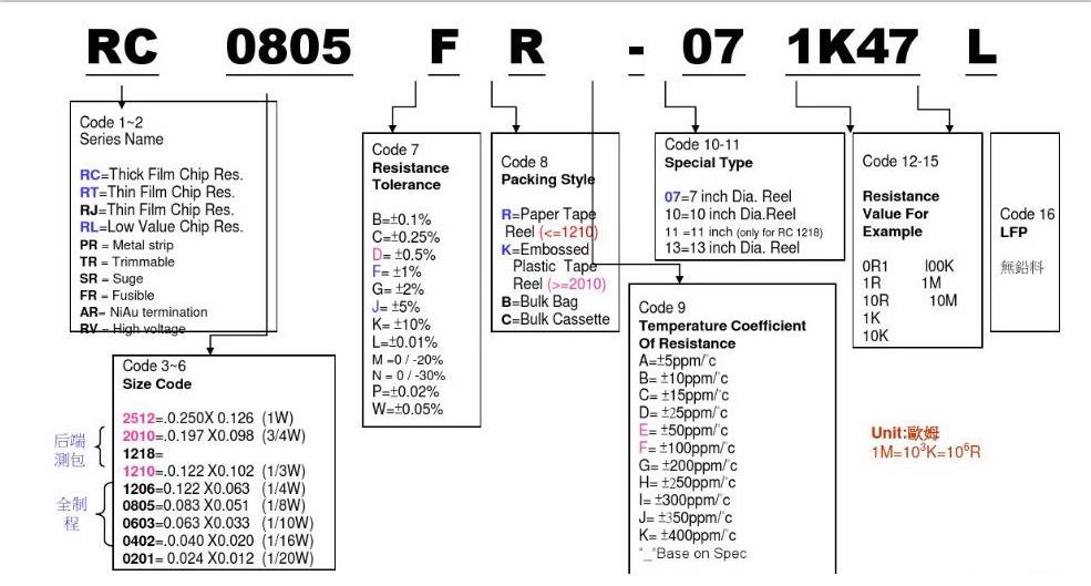YAGEO国巨贴片电阻命名规则,现在很多采购贴片电容电阻,都需要一张对照表,每个厂家生产都有自己品牌的命名规则。国巨也是电子元器件知名品牌之一,超翔电子专业销售国巨电容,国巨电阻等国巨全系列产品。欢迎咨询合作!下面给大家介绍下国巨贴片电阻命名规则对照表,供大家参考!希望对您有所帮助!国巨贴片电阻命名规则对照表: