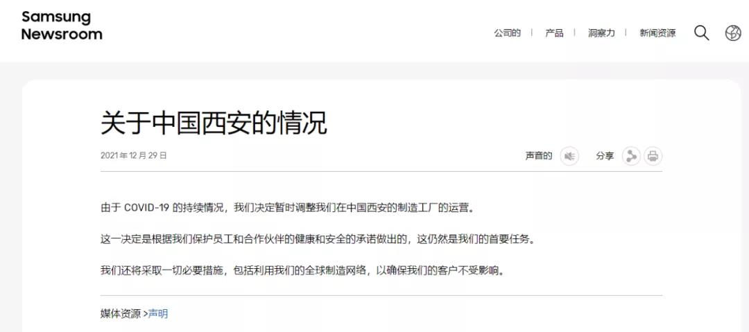 受西安封城影响! 三星工厂停工暂停报价,受西安疫情严峻且封城影响,三星电子位处西安的快闪存储器(NAND)工厂暂时停工,预期至西安解封后才能恢复正常。市场评估,由于三星西安厂约占该公司整体产能约4成,将使短期NAND Flash报价看涨。随后,三星电子致函客户通知,预计西安地区NAND产品的制造能力可能会受到疫情影响,暂停报价。 NAND价格上涨的市场气氛继续酝酿。 &nbs